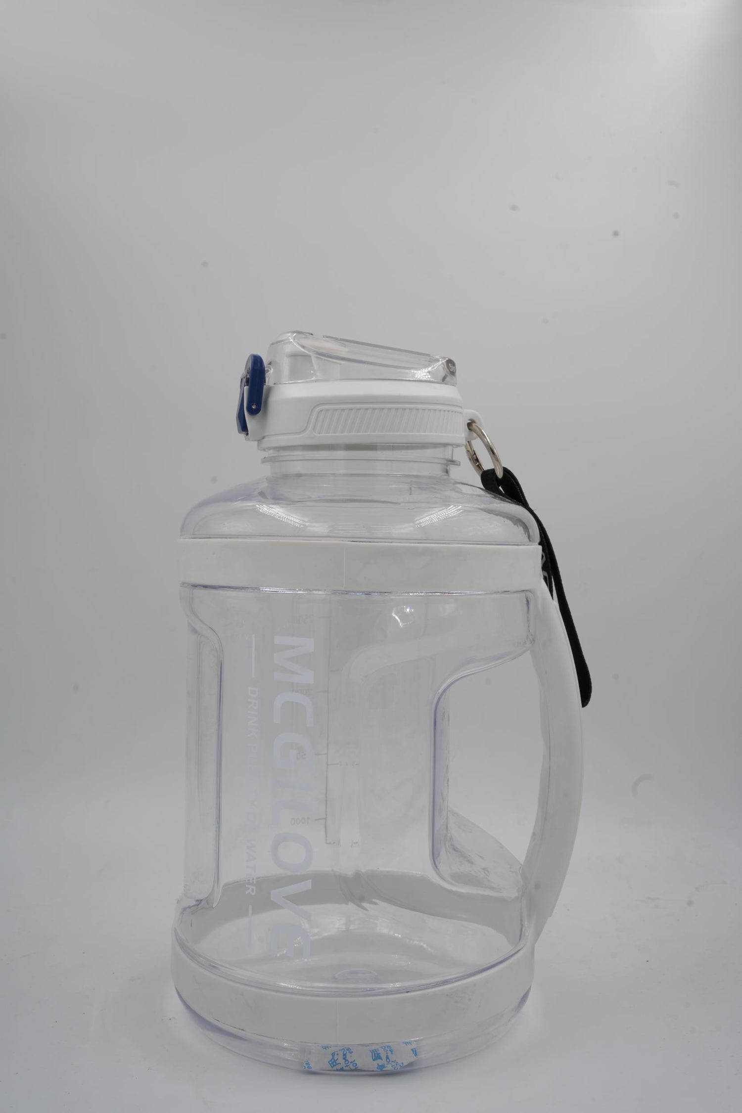 Large Clear Sports Water Jug with Built-In Handle & Strap - White/Blue